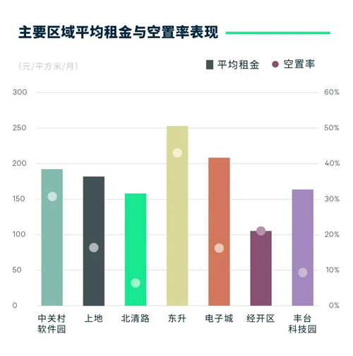 本季全市凈吸納量錄得8.2萬平方米,主要受新項目帶動,既有項目凈吸納量錄得負值,整體市場仍處于調(diào)整期。租金以及產(chǎn)品定位的差異使得子市場之間的去化表現(xiàn)愈發(fā)分化。類辦公物業(yè)預租或去化速度放緩,但能實現(xiàn)部分生產(chǎn)制造功能的新項目去化表現(xiàn)占優(yōu)。分區(qū)域看,中關(guān)村軟件園繼續(xù)受到頭部及腰部科技企業(yè)退租的影響,空置率持續(xù)攀升至30.5%的歷史最高水平;東升也因項目租金遠超鄰近子市場,類辦公需求集中入市但需求不振等原因,空置率一路上漲超40%;而上地業(yè)主則通過下調(diào)租金、推出簡裝修或特價房源等形式,吸引了一批成本導向的中小企業(yè)入駐,去化部分空置面積。其他區(qū)域,電子城在醫(yī)藥健康,軟件科技類企業(yè)跨區(qū)搬遷的帶動下,凈吸納量近一年來首次轉(zhuǎn)正;而經(jīng)開區(qū)、大興和豐臺科技園的新租活動則較為平淡。在分化的市場壓力下,全市商務園區(qū)租金報價同樣本比環(huán)比下降0.7%至每月每平方米158.8元,其中泛中關(guān)村集群各子市場降幅領(lǐng)先。
