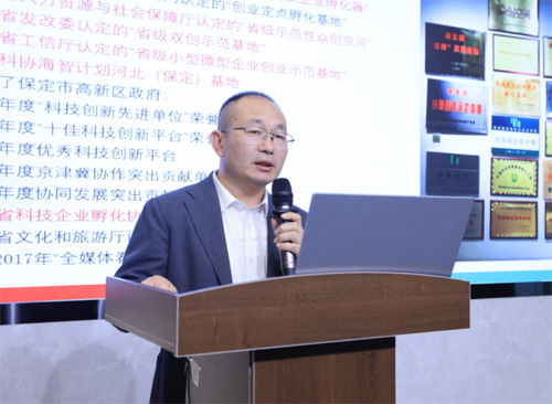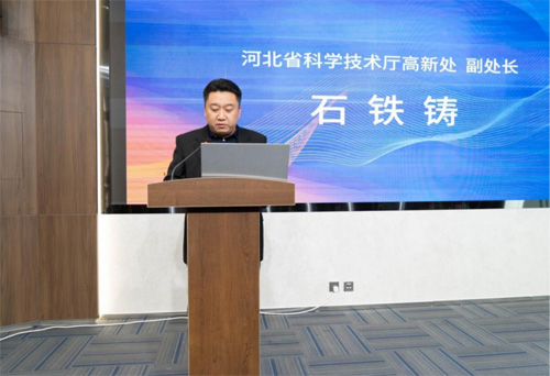 在2023河北省科技企業(yè)孵化協(xié)會(huì)年會(huì)上,石鐵鑄副處長為大會(huì)致辭,李靖秘書長和曾紅兵副秘書長分別發(fā)布了"河北省孵化載體發(fā)展報(bào)告"和"河北省雙創(chuàng)地圖"