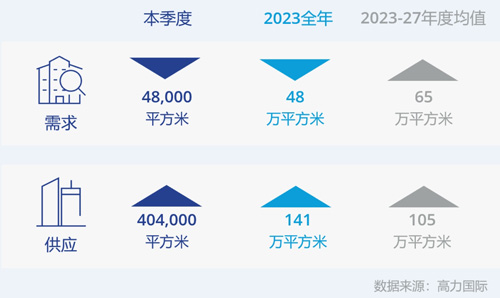 三季度,在企業(yè)降本增效成為主流的大環(huán)境下,租戶頻頻推遲租賃決策,導(dǎo)致市場(chǎng)去化壓力增大,預(yù)計(jì)2023年凈吸納量?jī)H為2022年凈吸納量的2/3。