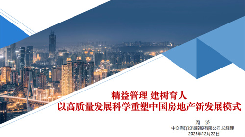 中交海南區(qū)域總部執(zhí)行總經(jīng)理、中交海投總經(jīng)理、全聯(lián)房地產(chǎn)商會全裝修產(chǎn)業(yè)分會新任常務(wù)副會長周濟(jì)先生在線上發(fā)表了《精益管理,建樹育人;高質(zhì)量發(fā)展科學(xué)重塑中國房地產(chǎn)新發(fā)展模式》的演講,他表示房地產(chǎn)行業(yè)發(fā)展宏觀層面的問題是經(jīng)濟(jì)、社會和政治制度的問題、中觀層面是產(chǎn)業(yè)經(jīng)濟(jì)與城市建設(shè)的問題、微觀層面是企業(yè)經(jīng)濟(jì)活動與百姓生活的問題。周濟(jì)先生認(rèn)為房地產(chǎn)是庇護(hù)人、養(yǎng)育人、愉悅?cè)、禮遇人、教化人的“場所”。房地產(chǎn)不僅是造好房子,也不僅是營好生活及造好城市,房地產(chǎn)更是在“建樹育人”;所以未來房地產(chǎn)行業(yè)造房必先“造人”、造房更要“建企”。