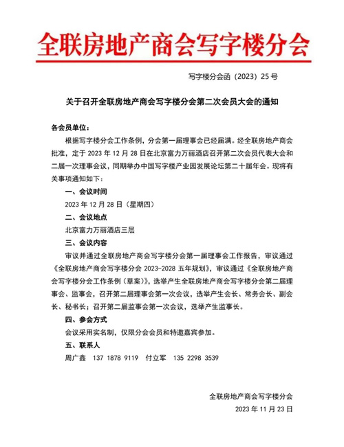 換屇通知|關(guān)于召開全聯(lián)房地產(chǎn)商會寫字樓分會第二次會員大會的通知