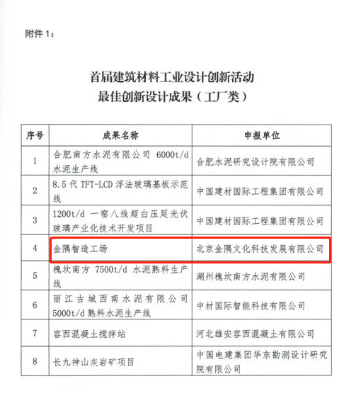 建筑材料行業(yè)大會是建材行業(yè)層次最高、影響最大的年度盛會,是了解國內(nèi)外建筑材料行業(yè)最新成果的權(quán)威窗口,也是了解行業(yè)發(fā)展趨勢的風(fēng)向標(biāo)。大會上發(fā)布了首屆建筑材料行業(yè)工業(yè)設(shè)計創(chuàng)新活動優(yōu)秀成果,金隅文化科技發(fā)展有限公司申報的金隅智造工場從170項參賽項目中脫穎而出,榮獲“首屆建筑材料工業(yè)設(shè)計創(chuàng)新活動最佳創(chuàng)意設(shè)計成果”獎項。