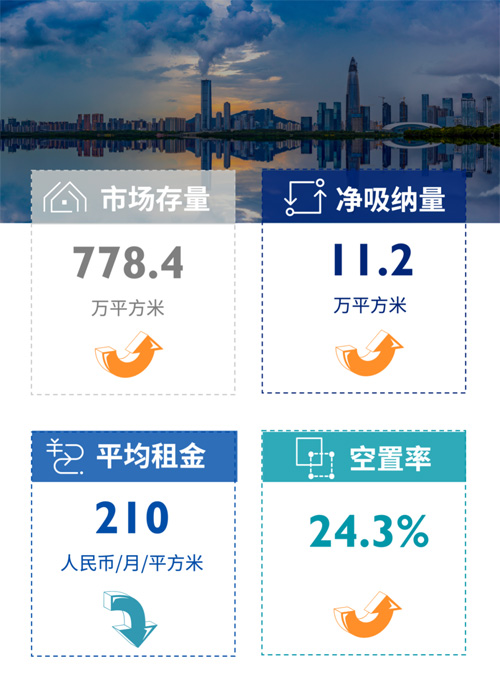 面對疫情擾動及供應(yīng)端持續(xù)放量的壓力,深圳甲級寫字樓市場依然保持韌性,空置率環(huán)比上季度僅微升0.2個百分點;部分項目業(yè)主繼續(xù)下調(diào)租金以挽留現(xiàn)有租戶從而減少去化壓力,全市甲級寫字樓市場平均租金于本季度繼續(xù)下探,錄得213.9元每平方米每月;
