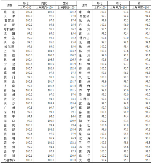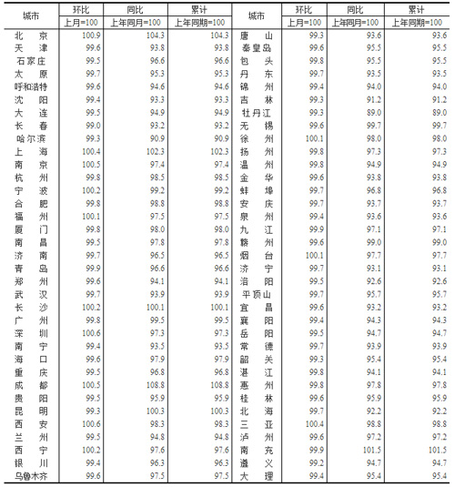 表1:2023年1月70個大中城市新建商品住宅銷售價格指數(shù)