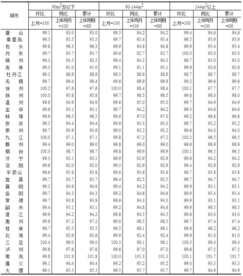 表3:2023年1月70個大中城市新建商品住宅銷售價格分類指數(shù)(二)