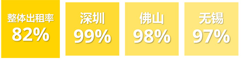 市場整體出租率82%,24個(gè)城市的出租率在80%以上,其中10個(gè)城市在90%以上。