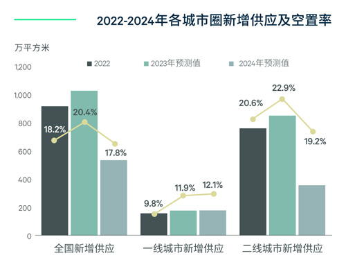 2023年一線都市圈整體新增供應仍將充裕,但考慮到2024年供應將大幅回落,我們建議租戶把握在核心區(qū)域內(nèi)布局拓展的機會。