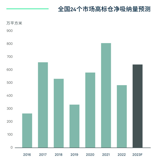 盡管2023年的出口增長面臨壓力,但我們認為由于此前影響物流活動的諸多負面因素均將得以扭轉,國內(nèi)消費的周期性反彈將支撐倉儲租賃市場的復蘇。此外,汽車等高端制造業(yè)的供應鏈升級和外包所帶動的高標倉需求也將持續(xù)釋放。CBRE預計全年國內(nèi)主要城市高標倉凈吸納量有望超過640萬平方米,同比增長30%。