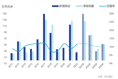 預(yù)計在2023年,將有近150萬方新增供應(yīng)入市,并將階段性推高空置率;同時隨著消費的復(fù)蘇,全市整體凈吸納量預(yù)計將大幅提升,新增供應(yīng)量及吸納量均預(yù)計接近2017年水平;此外,非核心商圈潛力巨大,競爭也將日趨激烈,預(yù)計整體平均租金水平相較2022年將不會有明顯變化。