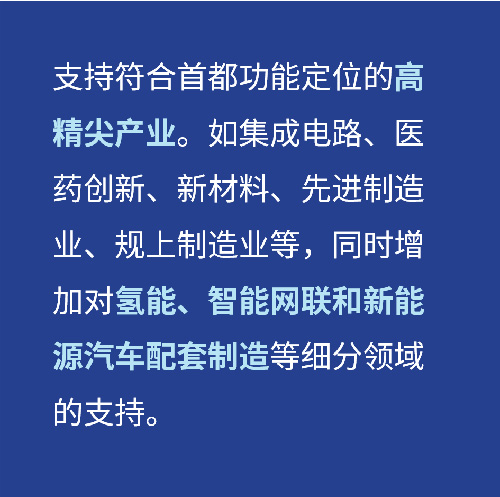 2022年北京實(shí)現(xiàn)地區(qū)生產(chǎn)總值41610.9億元,比上年增長0.7%。2023年北京市人民政府工作報(bào)告中,對本年度產(chǎn)業(yè)發(fā)展做出了指引:“地區(qū)生產(chǎn)總值增長4.5%以上。深化非首都功能疏解,推動構(gòu)建更加緊密的京津冀協(xié)同發(fā)展格局;建設(shè)更具國際競爭力的現(xiàn)代化產(chǎn)業(yè)體系,發(fā)展鞏固高精尖產(chǎn)業(yè)。加強(qiáng)集成電路系列重要研發(fā)產(chǎn)業(yè)項(xiàng)目建設(shè),聚焦新型抗體、細(xì)胞和基因治療等前沿領(lǐng)域,做強(qiáng)醫(yī)藥健康產(chǎn)業(yè),在衛(wèi)星互聯(lián)網(wǎng)、氫能等新興領(lǐng)域拓展布局,加快新能源汽車優(yōu)質(zhì)項(xiàng)目建設(shè)!