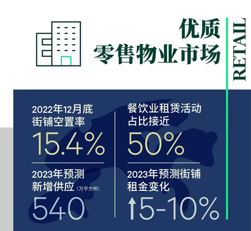 “由于本港長期采取社交距離措施,2022年的大部分時間本地零售市場情緒持續(xù)低迷。在第四季度放寬旅游及疫情相關(guān)限制下,市場情緒明顯升溫。隨著中國內(nèi)地旅客的逐漸回歸,預計市場情緒將在2023年增強,有望支持零售業(yè)的租賃需求和租金增長,尤其是以游客為主導的零售商。我們預計街鋪租金今年將增長5%-10%!