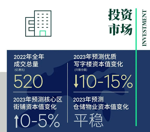 “持續(xù)加息、股市下行及經(jīng)濟衰退降低了2022年的投資意愿。在三年的疫情后,中國內(nèi)地和香港特區(qū)通關(guān)將逐步加快各行各業(yè)的業(yè)務(wù)流動,改善投資市場氣氛。由于高融資成本仍是主要障礙,預計2023年上半年整體交投淡靜,但隨著經(jīng)濟穩(wěn)步復蘇,下半年或有所改善!