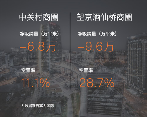 根據(jù)高力國(guó)際數(shù)據(jù),中關(guān)村和大望京全年凈吸納量分別為-6.8萬(wàn)平方米和-9.6萬(wàn)平方米;中關(guān)村空置率達(dá)到11.1%,這是近15年里首次攀升至10%以上;望京酒仙橋的空置率同比上漲超過(guò)20%,達(dá)到28.7%。