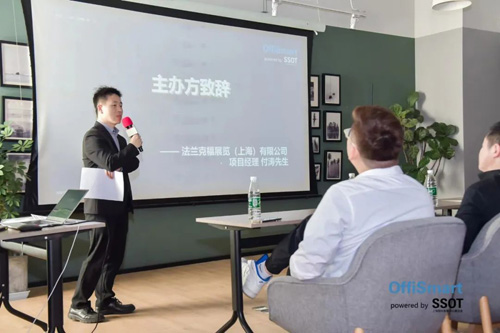 法蘭克福展覽(上海)有限公司代表付濤先生做開場致詞!爱斚抡侵厮苻k公實體場所的良機!借助新興技術(shù)或新型空間,構(gòu)建一種智能的、低碳的、可持續(xù)的、有人文關(guān)懷的辦公生態(tài),打造獨特、充實且富有吸引力的辦公體驗,讓員工的自我潛能得到激發(fā),讓各種發(fā)展?jié)摿Τ浞直虐l(fā)出來!