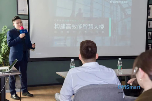 廈門億聯(lián)通訊技術(shù)有限公司北區(qū)渠道總監(jiān)倪云慶先生重點介紹了億聯(lián)新推出來整個智慧辦公核心的解決方案,圍繞空間即如何提高坪效;圍繞人效即如何提高溝通協(xié)作能力,自智慧會議室、訪客、共享工位、辦公空間及安防、固定資產(chǎn)等七大核心能力模塊,再結(jié)合音頻、視頻、IM辦公協(xié)同等為企業(yè)全方位打造智慧大樓綜合解決方案。