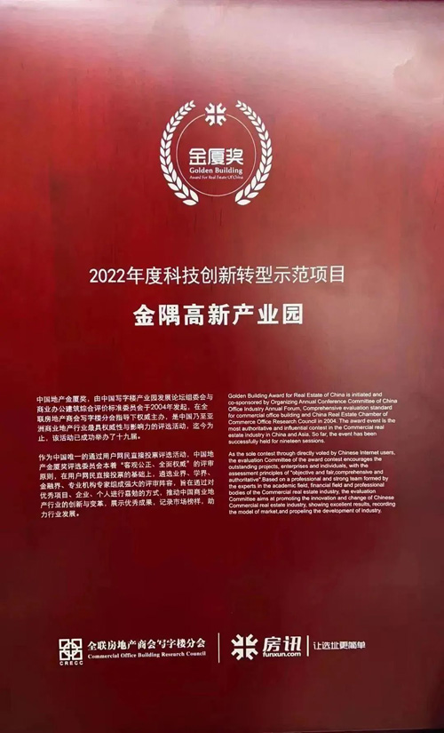 在中國(guó)寫字樓產(chǎn)業(yè)園發(fā)展論壇第十九屆年會(huì)上,2022年度中國(guó)地產(chǎn)金廈獎(jiǎng)重磅揭曉,并舉辦了盛大的頒獎(jiǎng)典禮。