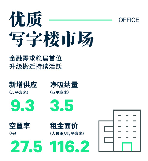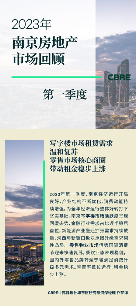 2023年第一季度,南京寫字樓市場錄得一個(gè)新項(xiàng)目交付,位于河西板塊的金鷹世界B座,作為垂直產(chǎn)業(yè)園區(qū),該項(xiàng)目立足于數(shù)字經(jīng)濟(jì)、智能制造、生命健康等行業(yè)辦公需求打造未來產(chǎn)業(yè)基地。隨著疫情影響逐漸消散,企業(yè)經(jīng)營預(yù)期穩(wěn)步向好,市場活躍度呈現(xiàn)回暖態(tài)勢,季內(nèi)租戶問詢與帶看均有大幅提升,帶動租賃需求走出陰霾,凈吸納量達(dá)3.5萬平方米,環(huán)比增加69.8%,而受到大體量新增供應(yīng)入市影響,全市空置率環(huán)比上漲1.0個(gè)百分點(diǎn)至27.5%。