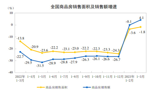 表1 2023年1-3月份全國(guó)房地產(chǎn)開發(fā)和銷售情況