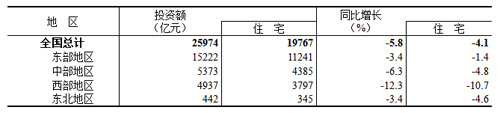 1—3月份,全國(guó)房地產(chǎn)開發(fā)投資25974億元,同比下降5.8%;其中,住宅投資19767億元,下降4.1%。