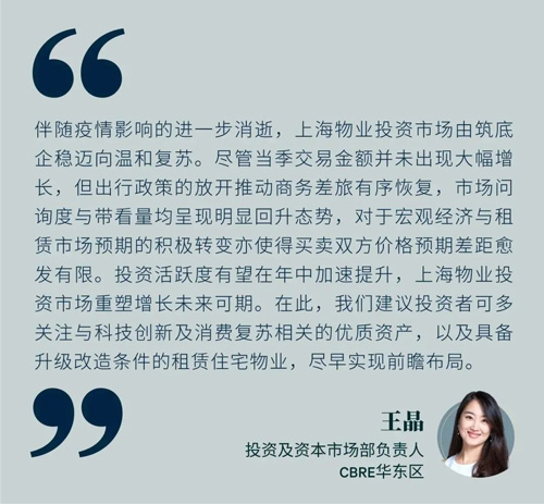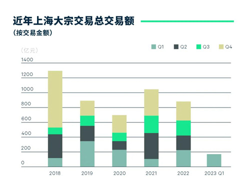 2023年第一季度,上海物業(yè)投資市場(chǎng)錄得21筆大宗交易,交易金額達(dá)186.9億元,環(huán)比下降25.4%。市場(chǎng)信心穩(wěn)步恢復(fù),投資者問(wèn)詢量明顯提高,交易活躍度預(yù)計(jì)將在年中有所體現(xiàn)。
