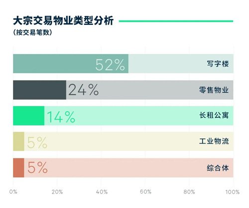寫(xiě)字樓物業(yè)仍為最受歡迎的資產(chǎn)類型,尤以商務(wù)園區(qū)物業(yè)的交易表現(xiàn)最為亮眼,交易金額突破百億,成熟子板塊如張江及金橋均錄得穩(wěn)定運(yùn)營(yíng)的優(yōu)質(zhì)項(xiàng)目在本季度易手;寫(xiě)字樓自用買(mǎi)家購(gòu)買(mǎi)力持續(xù)堅(jiān)挺,季內(nèi)北外灘與黃浦濱江等沿江板塊吸引國(guó)資背景企業(yè)進(jìn)駐,長(zhǎng)風(fēng)、張江與浦江等科創(chuàng)氛圍濃厚區(qū)域則受到集成電路、軟件開(kāi)發(fā)等高科技公司的青睞。隨著首單市場(chǎng)化機(jī)構(gòu)運(yùn)營(yíng)的保障性租賃住房公募REIT成功發(fā)行,疊加租賃市場(chǎng)需求穩(wěn)定與租金韌性之表現(xiàn),長(zhǎng)租公寓愈發(fā)受到投資者追捧。此外,零售相關(guān)物業(yè)交易在本季度有所回暖,位于非核心板塊的商業(yè)裙房與臨街店鋪等資產(chǎn)類型均有所成交。