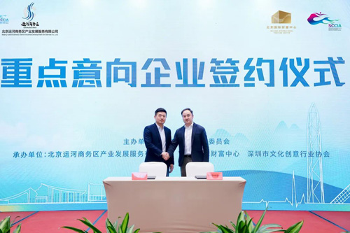 會中,通州區(qū)“兩區(qū)”辦向深圳市文化創(chuàng)意行業(yè)協(xié)會頒發(fā)了北京城市副中心“兩區(qū)”建設(shè)重點合作單位銘牌,聘請深圳市文化創(chuàng)意行業(yè)協(xié)會秘書長陳鶴平作為北京城市副中心國家服務(wù)業(yè)擴大開放綜合示范區(qū)和中國(北京)自由貿(mào)易試驗區(qū)業(yè)界理事委員會理事委員,揭牌成立了“深圳市文化創(chuàng)意行業(yè)協(xié)會北京城市副中心工作站”,北京國際財富中心與重點企業(yè)中智車聯(lián)、紅與虹集團(tuán)進(jìn)行了意向簽約。