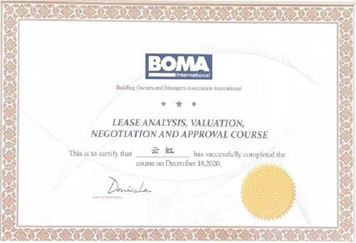 憑借過(guò)往的努力,云虹連續(xù)多年獲得商辦地產(chǎn)優(yōu)秀經(jīng)理人以及商業(yè)辦公評(píng)價(jià)標(biāo)準(zhǔn)特約研究員、2022年商業(yè)辦公新勢(shì)力人物等個(gè)人獎(jiǎng)項(xiàng),取得BOMA中國(guó)LEASE ANALYSIS, VALUATION ,NEGOTIATION AND APPROVAL COURSE等證書(shū)的同時(shí)持續(xù)擔(dān)任全聯(lián)房地產(chǎn)商會(huì)寫(xiě)字樓分會(huì)副會(huì)長(zhǎng)。