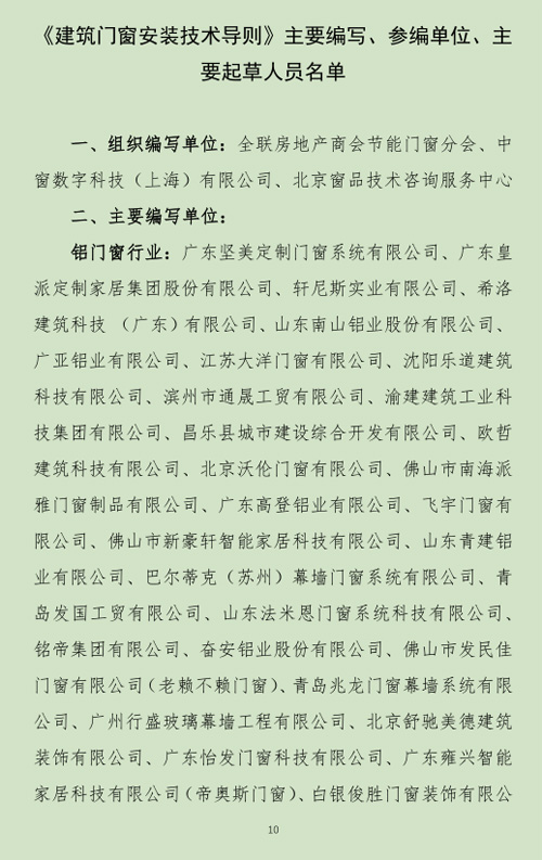 關(guān)于《建筑門窗安裝技術(shù)導(dǎo)則》主要編寫、參編單位、主要起草人員名單公告