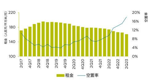 季度甲級(jí)寫字樓租金和空置率走勢(shì)