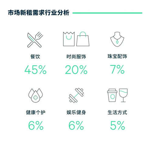 時尚服飾類需求占比20%,以潮流女裝、設(shè)計師品牌以及運動戶外類需求活躍。其中,lululemon亞太最大門店落地靜安嘉里中心,UNITED ARROWS國內(nèi)首家快閃店登陸港匯恒隆廣場。珠寶配飾類需求占比7%,周大福薈館JEWELRIA以及六福珠寶等品牌多點布局,日本珠寶品牌STAR JEWELRY中國首店亮相港匯恒隆廣場。此外,德國連鎖超市品牌ALDI奧樂齊加速上海布局,上半年連擴多家門店。