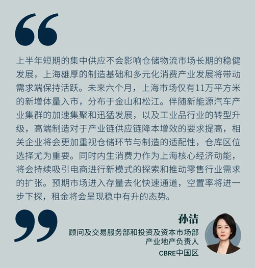 2023年上半年上海倉儲物流市場錄得7個新項目入市,累計供應(yīng)達78.7萬平方米,創(chuàng)歷史新高,過半供應(yīng)落入青浦子市場,其中二季度新增供應(yīng)體量為25.2萬平方米。三方物流和電商的新興增長點持續(xù)為上海市場帶來新租需求。上半年凈吸納量共計31.4萬平方米,達7年內(nèi)歷史最高水平,其中二季度凈吸納量錄得14.9萬平方米。