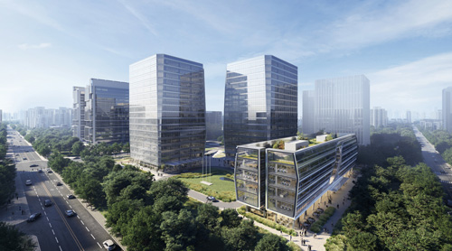 項目B區(qū)由國際建筑師事務(wù)所GENSLER設(shè)計,9棟樓座以合圍之勢與景觀中軸共同構(gòu)建了城市活力微中心,西側(cè)緊鄰城市生態(tài)公園,入則寧靜,出則繁華。多樣化的城市彈性空間釋放無限商務(wù)活力。