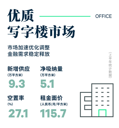 2023年上半年,南京寫字樓市場迎來一個新增供應(yīng)交付,位于河西板塊的金鷹世界B座,體量約9.3萬平方米。經(jīng)濟增長動能勢頭放緩,企業(yè)降本增效以尋求高質(zhì)量可持續(xù)發(fā)展,推動租賃市場進入優(yōu)化調(diào)整期,搬遷需求主導之下,二季度凈吸納量錄得1.5萬平方米,上半年累計值達5.1萬平方米,較去年同期水平提升39.3%。受益于新增供應(yīng)項目產(chǎn)業(yè)定位明確、價格優(yōu)勢明顯、去化表現(xiàn)良好的積極作用,全市空置率環(huán)比下降0.4個百分點,較去年年末上漲0.5個百分點至27.1%。