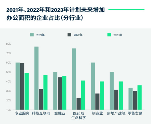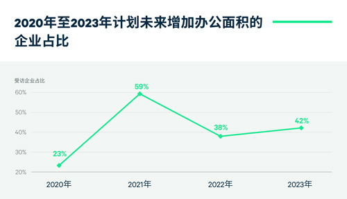 隨著防控措施調(diào)整后大部分員工回歸辦公室,調(diào)查顯示,2023年30%的企業(yè)計劃增加固定工位,占比較2022年提升10個百分點。