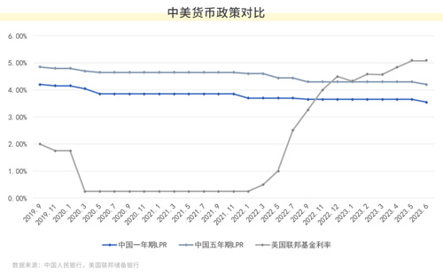 國內(nèi)貨幣政策維持穩(wěn)健,央行6月已經(jīng)調(diào)降MLF、OMO和LPR利率10BP,為國內(nèi)房地產(chǎn)市場、信貸市場、經(jīng)濟(jì)修復(fù)等帶來多重利好。但美聯(lián)儲加息通道未接近終點(diǎn),中美利率差異持續(xù)走闊,仍然是影響國際資本流動和資產(chǎn)價(jià)格表現(xiàn)的桎梏。
