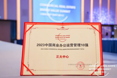 圖注:正大中心榮獲“2023中國商業(yè)辦公運(yùn)營管理10強(qiáng)”證書