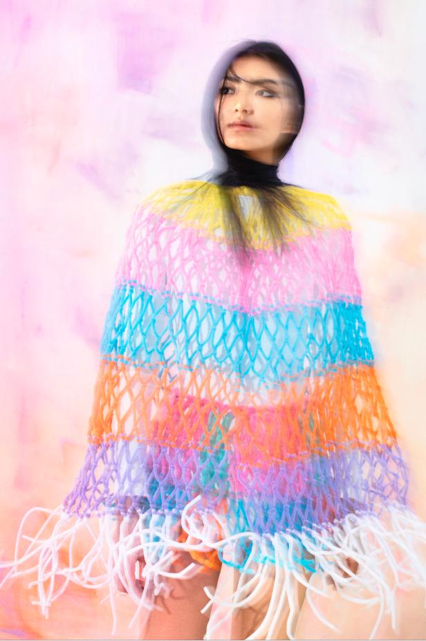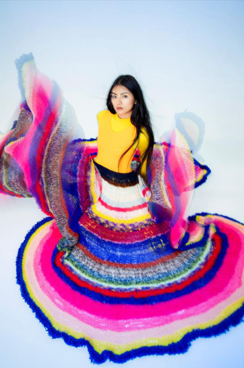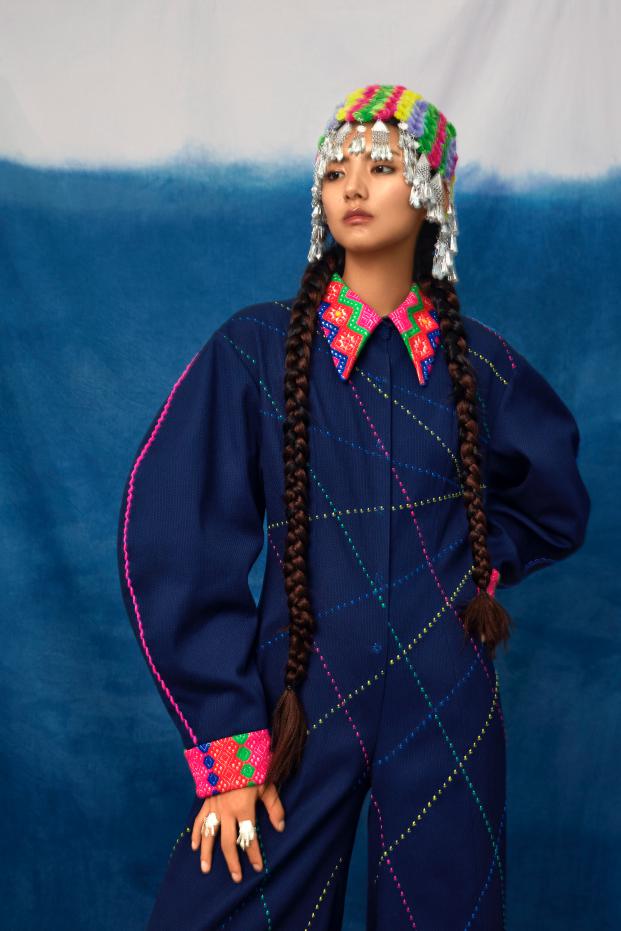 "東西互望"時(shí)尚展覽是北京服裝學(xué)院聯(lián)合北京時(shí)裝周,共同孵化新銳時(shí)裝設(shè)計(jì)師的展示平臺(tái),也是北京市"中國(guó)傳統(tǒng)服飾文化的搶救傳承與設(shè)計(jì)創(chuàng)新"博士人才培養(yǎng)項(xiàng)目的成果展示。設(shè)計(jì)師張嫣展示的系列服裝,嘗試把中國(guó)傳統(tǒng)文化與現(xiàn)代審美融合,將少數(shù)民族服飾的圖案藝術(shù)化。同時(shí),將其典型廓形提取轉(zhuǎn)化,再借由現(xiàn)代的編織與針織材料立體重塑其流動(dòng)感。在古今轉(zhuǎn)換中,在東西互望間,傳統(tǒng)和現(xiàn)代審美水乳交融。