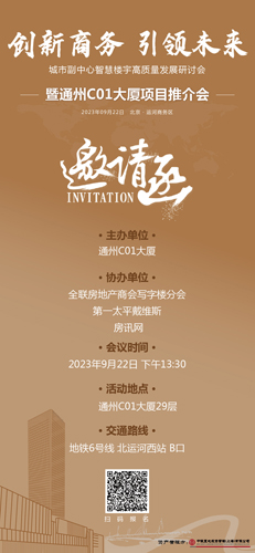 金秋九月,收獲時節(jié)。9月22日,通州C01大廈誠邀業(yè)界嘉賓,共同譜寫通州商務(wù)樓宇高質(zhì)量發(fā)展的未來華章。