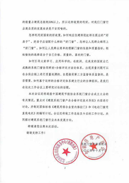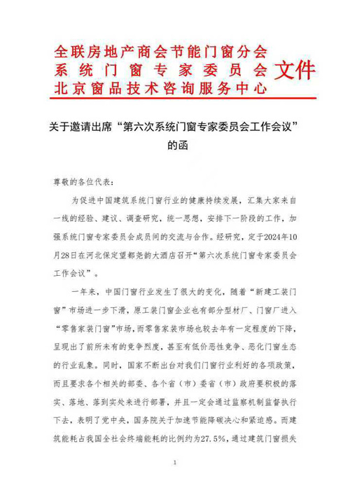 關(guān)于邀請出席“第六次系統(tǒng)門窗專家委員會工作會