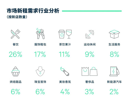 部分存量標(biāo)桿項(xiàng)目,如國(guó)貿(mào)商城、北京APM、朝陽(yáng)合生匯、朝陽(yáng)大悅城等,加速品牌結(jié)構(gòu)調(diào)整節(jié)奏,成功引入高奢、高化香氛、潮流服飾及大眾餐飲等諸多業(yè)態(tài)。季內(nèi)零售業(yè)態(tài)開(kāi)店占比達(dá)52%,以運(yùn)動(dòng)戶(hù)外(如Salomon、Saucony)、潮流服飾(如Acne Studios、鄂爾多斯)、美妝香氛(如聞獻(xiàn)、3CE)為主,而餐飲業(yè)態(tài)則以39%的穩(wěn)定增速緊隨其后(如霸王茶姬、TheWoodsCafe、One Bagel等)。縱觀全年拓店表現(xiàn),零售與餐飲不分伯仲,分別占據(jù)新開(kāi)店數(shù)量的46%及43%。零售業(yè)態(tài)中服飾鞋包穩(wěn)坐首席,運(yùn)動(dòng)休閑持續(xù)擴(kuò)張,珠寶首飾等貴重金屬緊隨其后;餐飲及茶飲果汁亦有不同程度的提升,其中地域性較強(qiáng)的大眾餐飲、網(wǎng)紅茶飲、大眾烘焙甜品等在不同商圈多點(diǎn)開(kāi)花;其他業(yè)態(tài)中,新能源汽車(chē)拓店步伐放緩。線(xiàn)下消費(fèi)回流加速,尤其節(jié)假日客流復(fù)蘇明顯,加上大量新商場(chǎng)集中開(kāi)業(yè)帶動(dòng),全市凈吸納量同比提升110%達(dá)63.3萬(wàn)平方米。全年空置率在年初沖高后逐步回落,季內(nèi)環(huán)比下降0.3個(gè)百分點(diǎn)至8.0%。