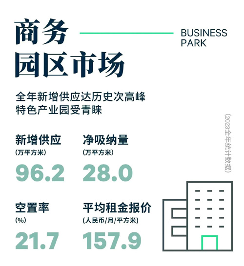 2023年第四季度,北京商務(wù)園區(qū)一共迎來(lái)四個(gè)新項(xiàng)目交付共計(jì)體量38.5萬(wàn)平方米,分別為兩個(gè)生命科學(xué)園區(qū)及兩個(gè)純辦公屬性物業(yè),涉及大興,東升及北清路子市場(chǎng),至此推升全年市場(chǎng)新增供應(yīng)至歷史第二高水平,錄得總體量96.2萬(wàn)平方米,僅次于2020年。全年六成新項(xiàng)目均為辦公屬性空間且全部交付在泛中關(guān)村集群,進(jìn)一步加劇了區(qū)域同類(lèi)產(chǎn)品之間的競(jìng)爭(zhēng),而集中在經(jīng)開(kāi)區(qū)和大興子市場(chǎng)新交付的帶有研發(fā)或生產(chǎn)功能的特色產(chǎn)業(yè)園項(xiàng)目,為產(chǎn)業(yè)客戶(hù)提供更多可選擇的空間,更容易受到中型規(guī)模企業(yè)的青睞,此類(lèi)項(xiàng)目普遍預(yù)租表現(xiàn)相對(duì)樂(lè)觀。