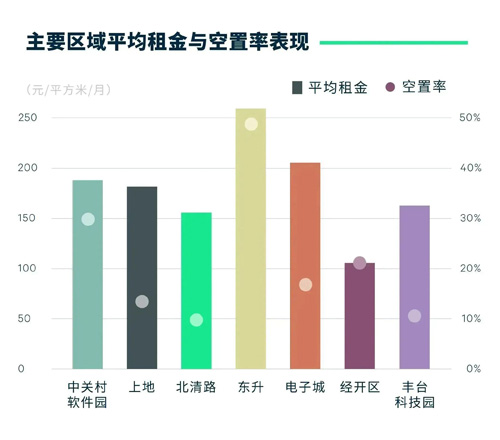 本季全市商務(wù)園區(qū)平均租金報(bào)價(jià)同樣本比環(huán)比下降0.8%,全年降幅達(dá)到3.1%,至每月每平方米157.9元,其中泛中關(guān)村集群降幅領(lǐng)先。純辦公空間需求疲軟,以及近兩年純辦公和研發(fā)類(lèi)新項(xiàng)目集中交付,給所在區(qū)域同類(lèi)產(chǎn)品的租金都帶來(lái)不小的下行壓力,也為租戶(hù)企業(yè)的降本增效和提質(zhì)升級(jí)策略創(chuàng)造了機(jī)會(huì)。