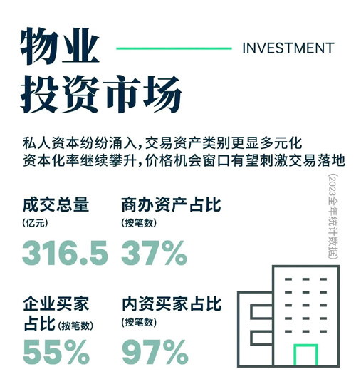 在市場(chǎng)租賃端表現(xiàn)不及預(yù)期的大環(huán)境下,業(yè)主對(duì)于各類(lèi)資產(chǎn)價(jià)格正在不斷修正,資本化率四季度繼續(xù)上行,買(mǎi)賣(mài)雙方價(jià)格預(yù)期差收窄。隨著資產(chǎn)價(jià)格的下調(diào)和可售優(yōu)質(zhì)資產(chǎn)數(shù)量的增多,將吸引更多企業(yè)和私人資本配置高性?xún)r(jià)比的優(yōu)質(zhì)資產(chǎn),而近期也看到險(xiǎn)資鎖定核心項(xiàng)目的意愿有所加強(qiáng)。