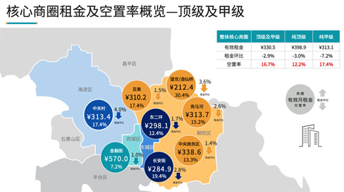 核心商圈租金及空置率概覽—頂級(jí)及甲級(jí)