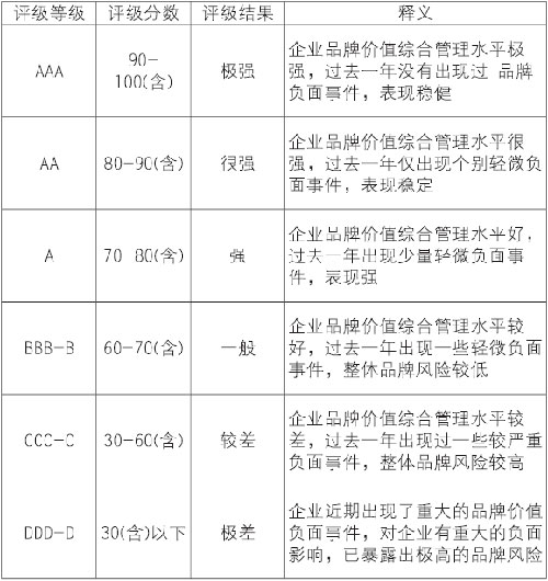 品牌強度是一個品牌相對于競爭對手在一系列無形指標上的整體表現(xiàn)。為了確定一個品牌的強度,調(diào)查評估組將系統(tǒng)考察品牌的營銷投資、股東權(quán)益以及這些對企業(yè)業(yè)績的影響。在報告中,每個品牌都被賦予一個品牌強度指數(shù),滿分為100分,這也將決定品牌價值的計算。根據(jù)評分,每個品牌都被賦予相應的品牌強度等級,從最低的D到最高AAA+,分析品牌強度指數(shù)相關(guān)子項有助于幫助管理者了解一個品牌未來成功的潛力及與競爭對手的差距。