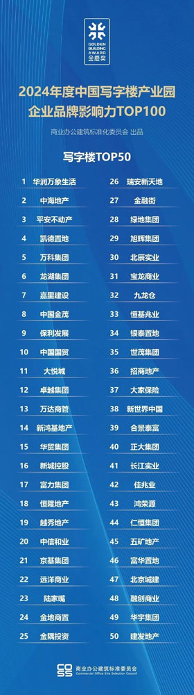 2024年度中國寫字樓產(chǎn)業(yè)園品牌影響力TOP100
