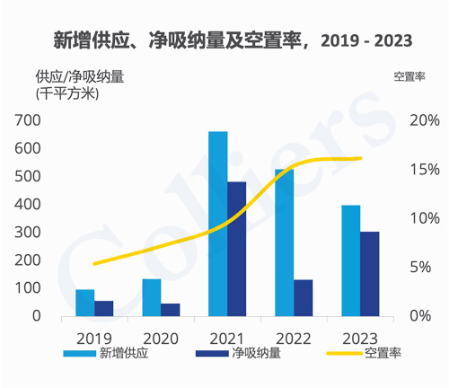 預(yù)計2024年,廣州全市有14個項目,共計約100萬平方米入市,其中六成來自琶洲,三成來自國際金融城,屆時廣州甲級寫字樓存量將被推升超800萬平方米。如全部項目如期入市,在市場需求保持中性釋放下,預(yù)計全市空置率將繼續(xù)上升。同時,在存量項目與新增項目競爭白熱化的情況下,全市租金大概率將繼續(xù)承壓。