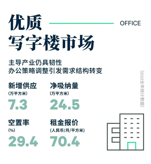 展望2024年,西安寫字樓市場將迎來45.4萬平方米的新增供應,其中超過86%為甲級樓宇。供給放量疊加,不少優(yōu)質(zhì)項目在2024年將面臨較大面積的租戶到期退租風險,租金表現(xiàn)仍將承壓下行。需求端來看,隨著經(jīng)濟的進一步復蘇,金融和專業(yè)服務的需求將保持穩(wěn)定增長。同時年底發(fā)布的《西安市推動數(shù)字經(jīng)濟高質(zhì)量發(fā)展若干措施》再次明確提出要加快數(shù)字基礎(chǔ)設(shè)施建設(shè)和支持數(shù)字產(chǎn)業(yè)發(fā)展,數(shù)字經(jīng)濟的加速發(fā)展將持續(xù)衍生科技互聯(lián)網(wǎng)類辦公需求,產(chǎn)業(yè)需求動能不減。