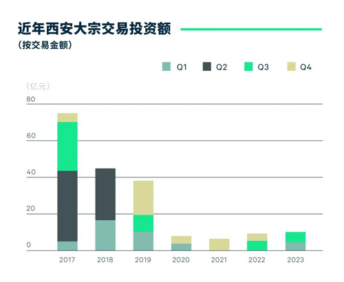 2023年,西安大宗交易市場共錄得9筆成交,已知交易額達10.5億元,同比上升20.7%。