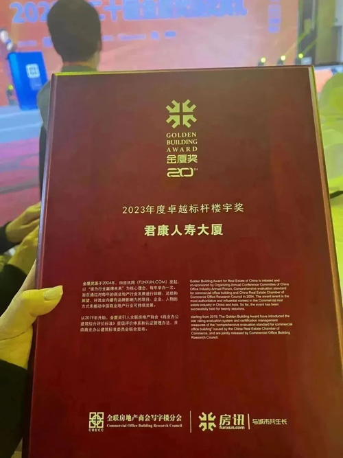 君康人壽大廈以卓越的建筑標(biāo)準(zhǔn)和一流的辦公環(huán)境,榮膺第20屆金廈獎(jiǎng)2023年度卓越標(biāo)桿樓宇獎(jiǎng)。